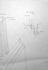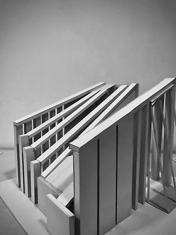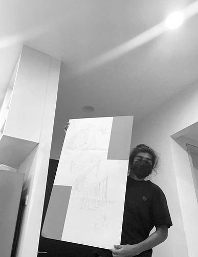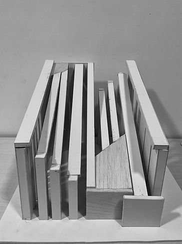 At scale 1:10, a full set of orthographic drawings which included a floor plan, 2 elevations and a section was produced manually to scale. Moreover, an exploded axonometric including detailed drawings of tectonic ideas were also produced. Finally, architectural abstract drawings with scaled figures as well as abstract tattoo stamps were produced to effectively communicate the design structure.